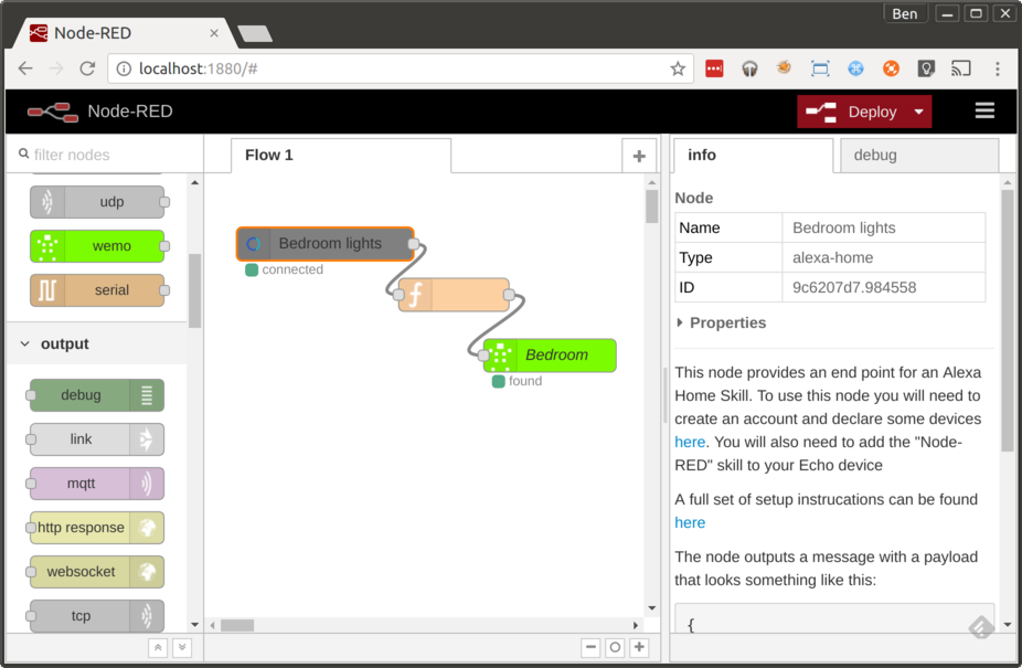 This node and service allows you to create your own "devices" to work with the Amazon Echo's Home Skill system, giving you voice control over basically anything you can interface with Node-RED. There is support for not only things like Belkin WeMo and Philps Hue, but also a whole range of homebrew devices. You can also use Amazon Alexa to kick off seqences of events not just discrete on/off type actions